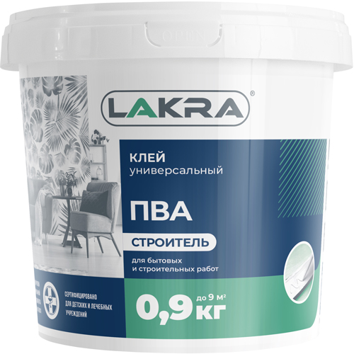 Клей ЛАКРА ПВА СТРОИТЕЛЬ универсальный 0,9 кг
