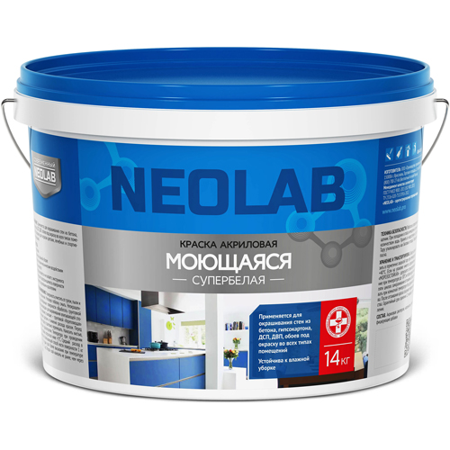Краска водно-дисперсионная NEOLAB Моющаяся супербелая 14кг